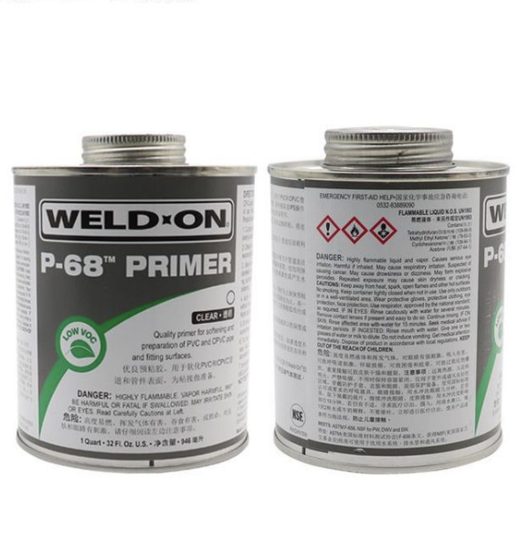 WELD-ON P-68是一種低VOC揮發(fā),無固含量,快速作用的預(yù)粘膠, P-68預(yù)粘膠能夠快速軟化和溶解PVC和CPVC和ABS管道和管件的接口表面。使用規(guī)格分為透明和紫色,紫色便于在接口表面區(qū)別。WELD-ON P-68預(yù)粘膠,于WELD-ON